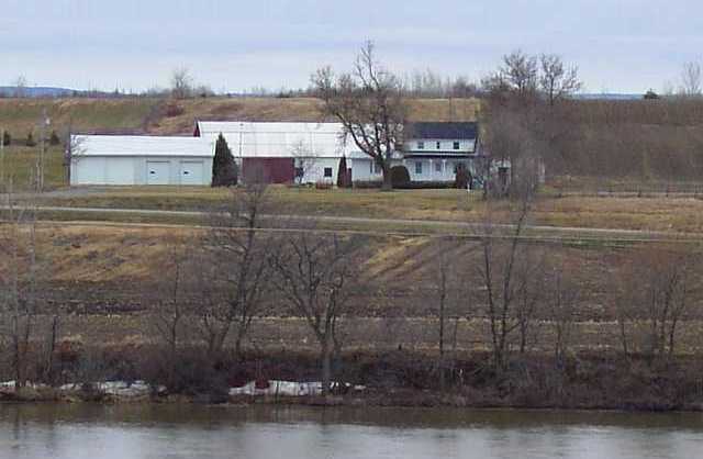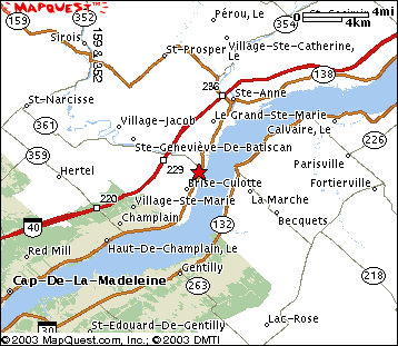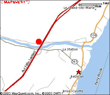I was told that Autoroute 40 from Montréal to Québec (Autoroute Felix Leclerc) passes on a portion of the ancestral farm. The top-left picture was taken from the Autoroute 40 bridge as it crosses the Batiscan river (looking North-East). With this information, you can pretty much figure out the exact location of the farm on this mapquest-map. The red star on the map represents Batiscan and the farm would be right under the letter G in Ste-Geneviève-de-Batiscan. A more detailed map shows how the secondary road that passes in front of the house is on the North side of the Batiscan river. On this map, the red dot marks the location of the farm.